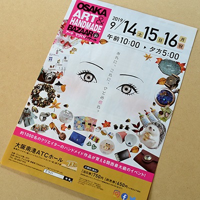 9月14日㈯〜16㈪㈷にアート&てづくりバザール大阪に出展します