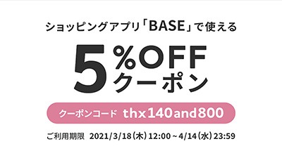 オンラインショップBASEで「お得な5%OFFクーポン」が、ご利用になれます。