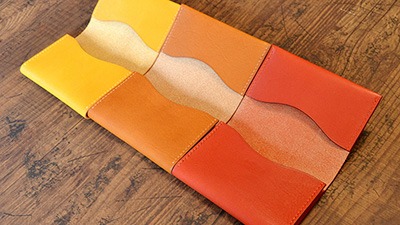 写真は、オーダーをいただいたシンプルな3色の名刺入れ。
