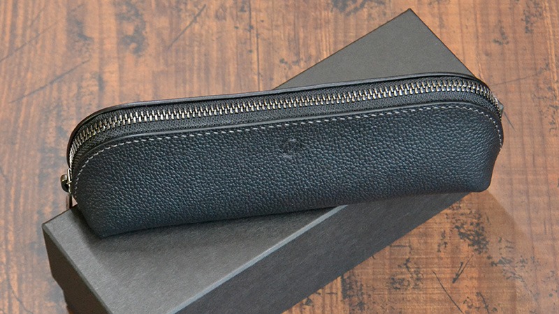 写真は、イタリアンレザー「エルバマット st. gemini」を使用したペンケースです。