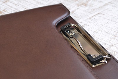 写真はイタリアンレザー「トゥクソン」で仕立てたクリップボードです。