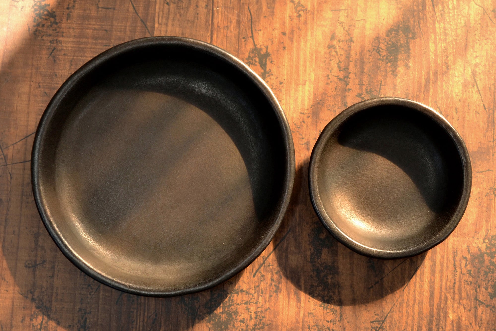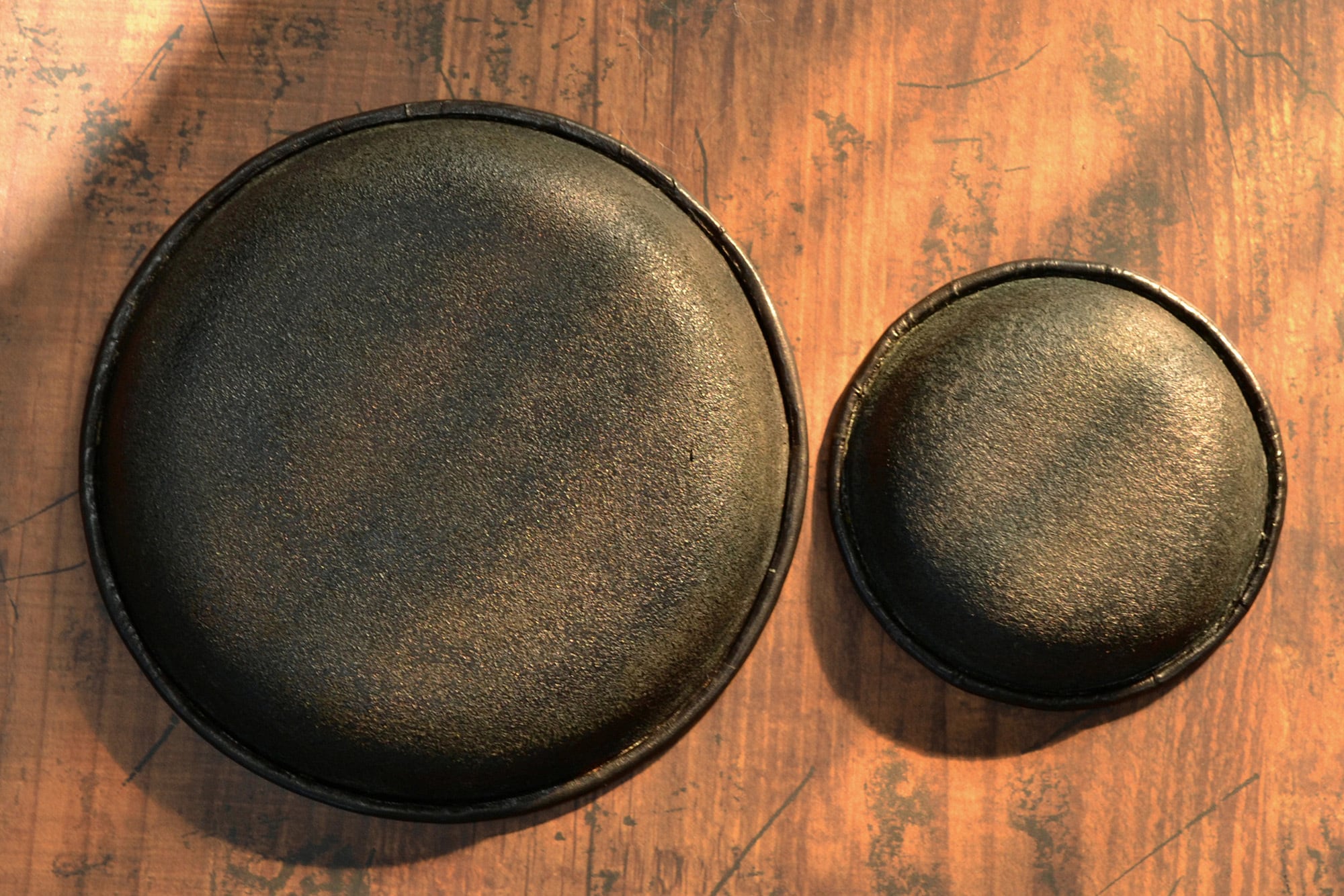 縫わない革絞りのレザートレイ、2サイズ(7.5cm+13cm)セットです。